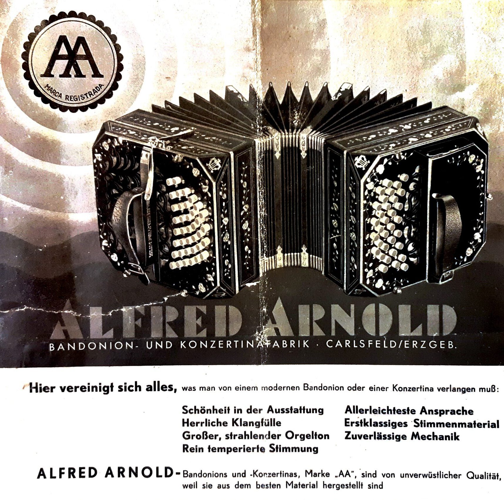 Doch den Höhepunkt der Exporterfolge nach Lateinamerika erreichen die „Arnoldschen“ Instrumente aus Carlsfed/Sa. zwischen 1910 bis 1939. Dort avancierte es zum Bandoneón, gab dem Tango seine Stimme und sicherte sich so sein „Überleben“.