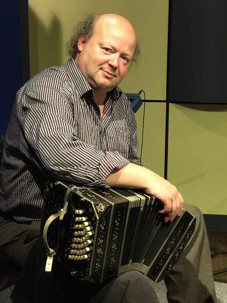 Seit 1984 spiele ich „Einheitsbandonion“ II/II oktav (Exportmodell), lernte es damals, aus purem Übermut, autodidaktisch als musikalischer Laie. Durch die „alte Kernlage“ war es möglich, die geläufigen Lieder und Tanzmusiken der Neo-Folklore-Bewegung der untergehenden DDR zu spielen. Jahre später befasste ich mich mit dem Quintenzirkel, den Sept-, verminderten & Majorakkorden und kann diese nunmehr „nach 5.000 Übungsstunden“ einmal im Instrument durchspielen.