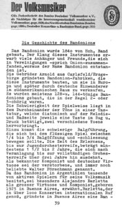- 1911 Gründung des Deutschen Konzertina- und Bandonion-Bund (DKuBB) 1925 ca. 14.000 Mitglieder; 1930 7.200 Mitglieder im DKuBB aber insgesamt ca. 30.000 aktive Spieler deutschlandweit. Erst nach dem 1ten Weltkrieg gründeten sich verstärkt im Ruhrgebiet Vereine. Auch 1923 dann „ein“ Club in Krefeld. Im Süden und Südwesten und an den Rändern des Reichsgebietes sind vergleichsweise wenig Vereinsgründungen belegt. Noch Vereine gründeten sich in Schlesien, Rhein-Neckar, in Franken und im Stuttgarter Raum. <Quelle: „Bandonionvereine Schroll“ – Blattfuchsverlag>