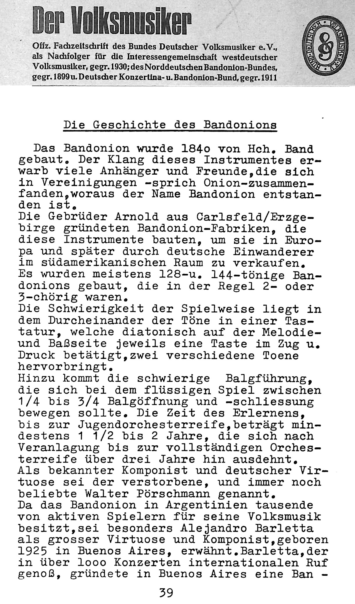Pointe: Die „Erfindung“ entlarvt sich als eine der erfolgreichsten Verbrauchertäuschungen der Musikgeschichte. Besonders bemerkenswert ist die bis heute wirkende unternehmerische Vorteilsnahme: Da selbst moderne Lexika und Veröffentlichungen (Print, Online, KI) Heinrich Band beharrlich als Erfinder und Konstrukteur ausweisen, scheitert die Fachwelt an einer konstruktiven Evaluation und verwaltet stattdessen ein geschichtliches Phantom, während die tatsächlichen sächsischen Schöpfer unsichtbar bleiben. Was von der Geschichte des Bandonions im Jahr 1973 noch an fatalem Wissen übrigblieb, ist im Fachorgan des „Der Volksmusiker“ Ausgabe 3/1973 selbst zu lesen.