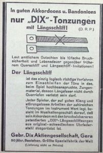 - Nachweislich hat Heinrich Band ab ca. 1843 Konzertinas verkauft und ab 1857 den Begriff „Bandonion“ eingeführt – zunächst für in Sachsen gefertigte Instrumente.